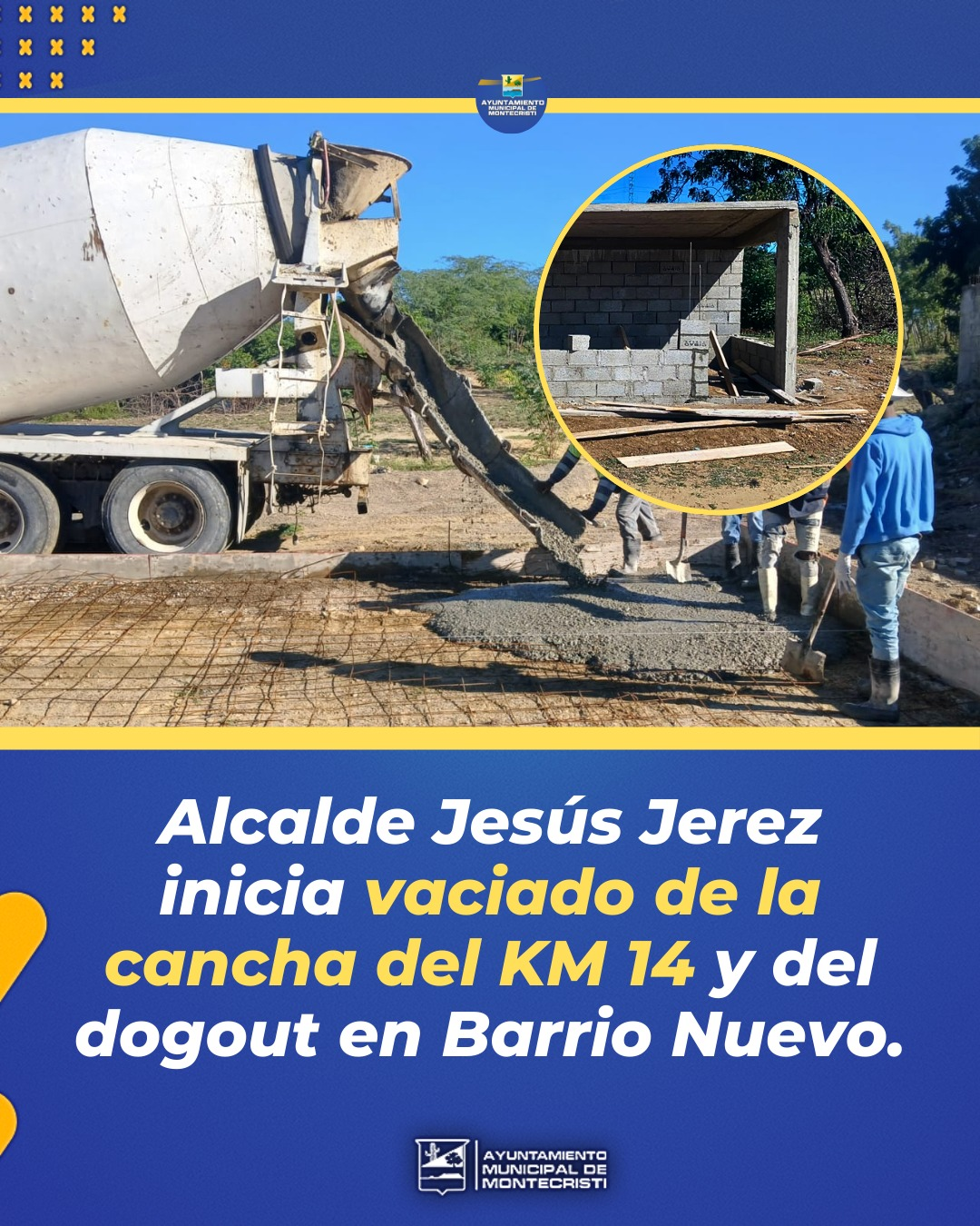 El alcalde Jesús Jerez dio inicio a los trabajos de vaciado de la cancha del kilómetro 14, en el sector Barrio Nuevo, como parte de las obras a las que se ha comprometido con las comunidades. Esta intervención busca mejorar las condiciones del espacio deportivo, garantizando un lugar más seguro y adecuado para la práctica del deporte y la recreación.