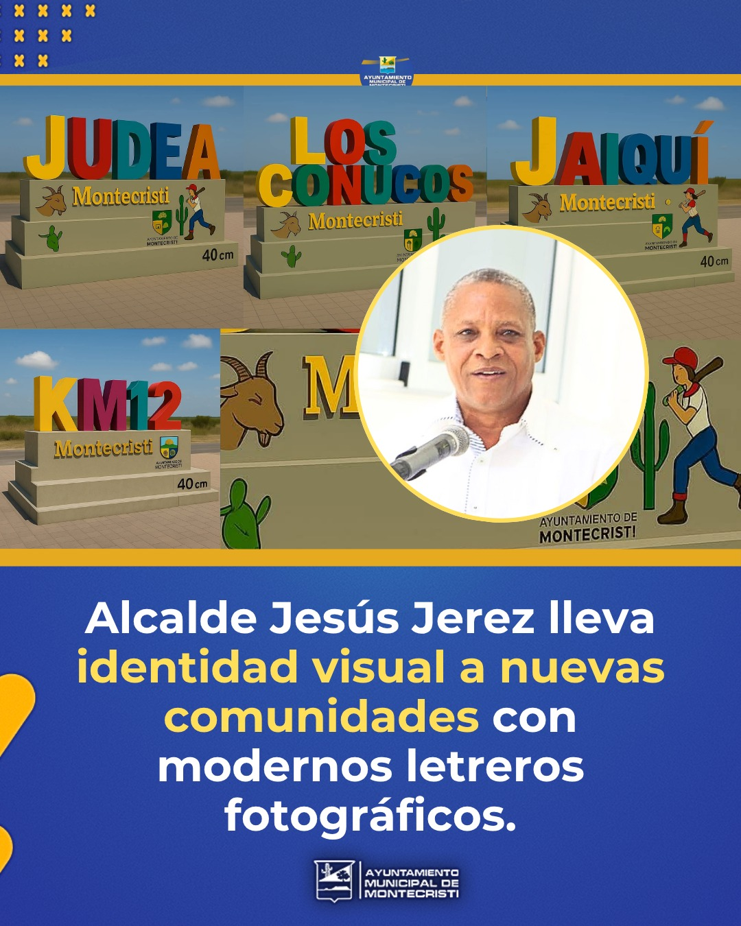 El alcalde de Montecristi, Jesús Jerez, continúa su compromiso de dignificar cada rincón del municipio con el anuncio de nuevas obras de letreros fotográficos en varias comunidades. En esta ocasión, las comunidades de Judea, Kilómetro 12, Jaiquí y Los Conucos serán intervenidas con estructuras modernas que resaltan su identidad y fortalecen el sentido de pertenencia.