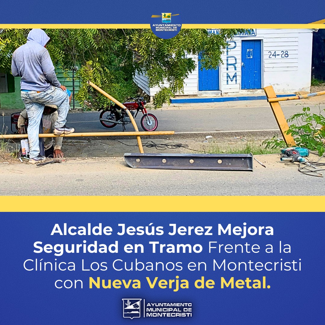 El alcalde Jesús Jerez ha tomado medidas para mejorar la seguridad de los transeúntes en la vía que se encuentra frente a la Clínica Los Cubanos, en Montecristi. Con el objetivo de proteger a las personas que transitan por esta zona, el alcalde ordenó la instalación de una nueva verja de metal en el tramo que pasa sobre un desagüe, reemplazando la vieja estructura que representaba un riesgo para la seguridad vial.