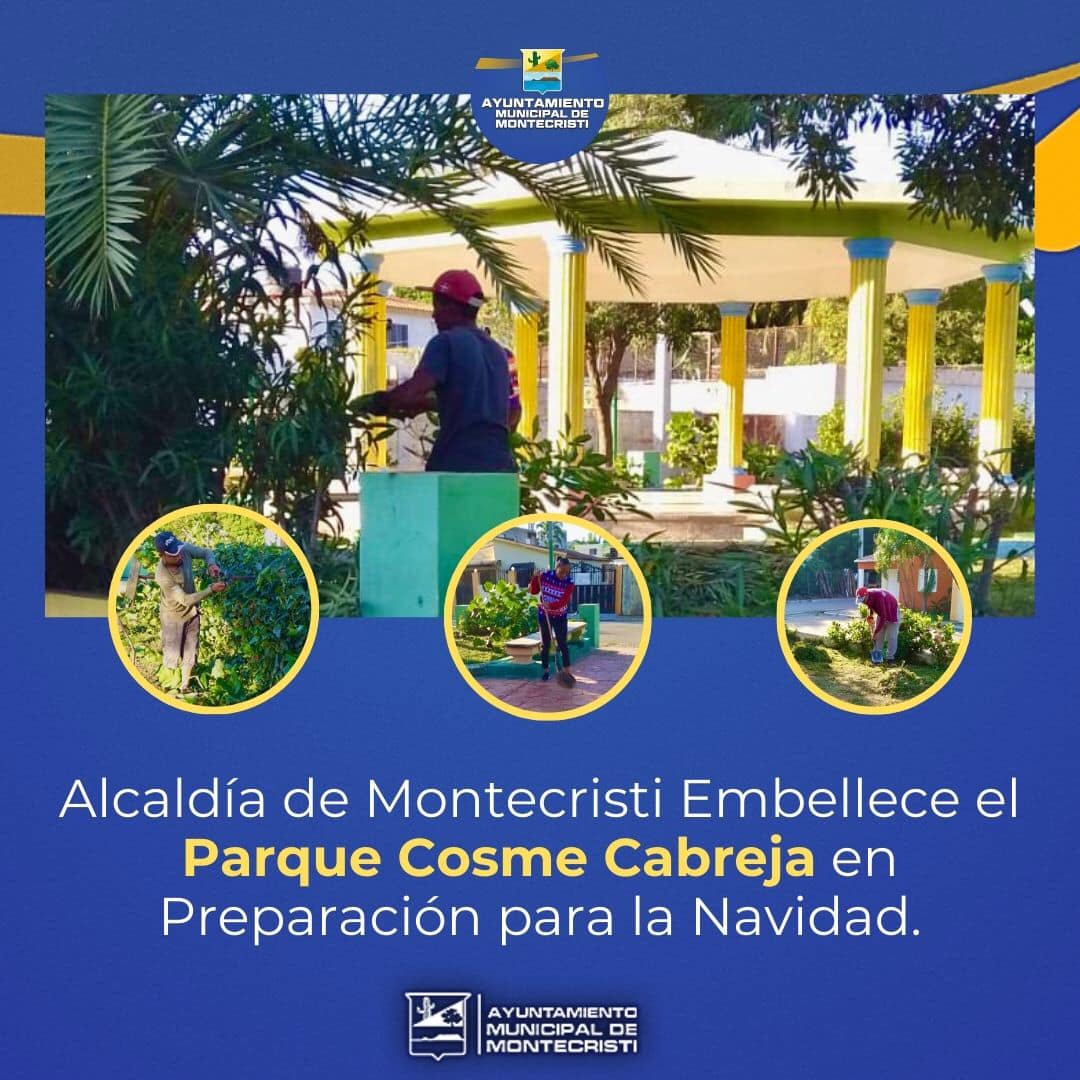 La Alcaldía de Montecristi, bajo la dirección del alcalde Jesús Jerez, ha llevado a cabo una jornada de limpieza y mantenimiento en el Parque Cosme Cabreja, ubicado en el barrio Las Flores. Esta acción forma parte del compromiso continuo de la administración municipal de garantizar que los espacios públicos estén en óptimas condiciones para el disfrute de los ciudadanos.