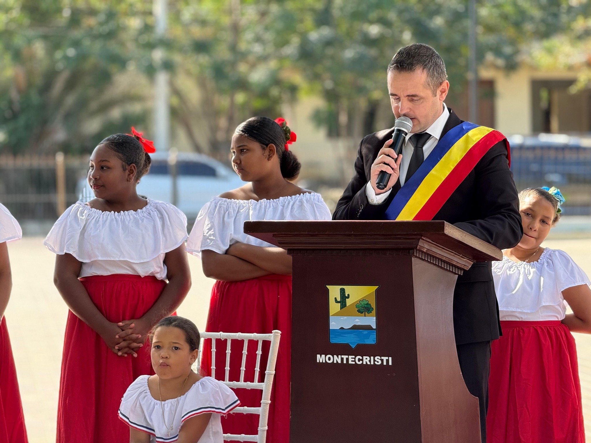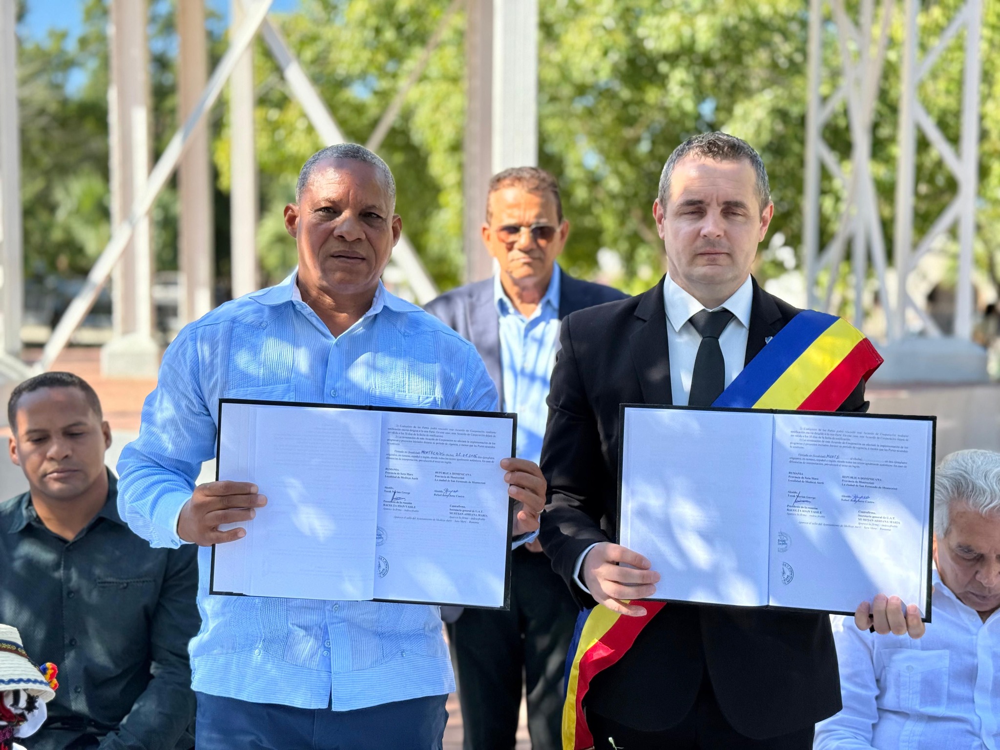 En un acto solemne celebrado en el emblemático Parque Reloj, símbolo del municipio de Montecristi, la Alcaldía de Montecristi firmó un histórico acuerdo interinstitucional y de cooperación con el municipio de Mediesu Aurit, Rumanía. El evento inició con los himnos nacionales de ambos países, interpretados por la Banda de Música Municipal, seguidos por palabras de bendición a cargo de Nelfa Carrasco y el diacono Ronald Díaz.