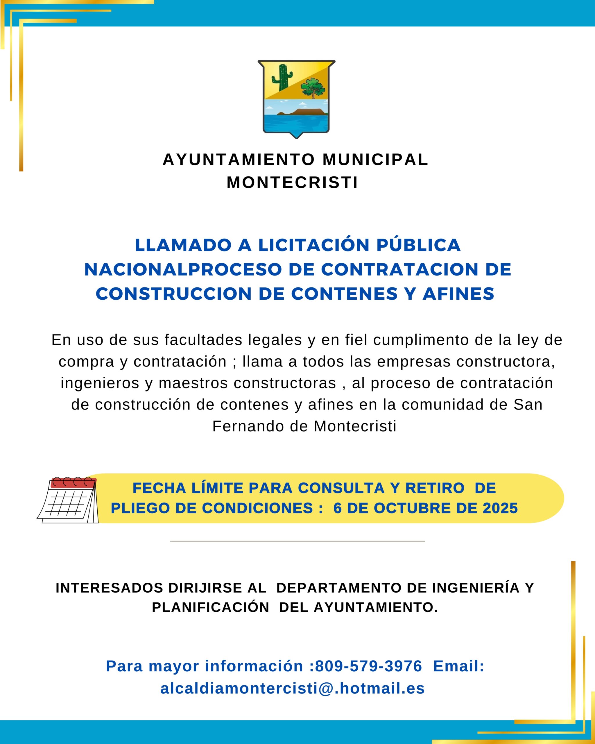 LLAMADO Alcaldía de Montecristi cumple promesas en el Km 5 Rincón Montecristi Alcalde Jesús Jerez impulsa unidad y consenso en el sector salinero de Montecristi Jesús Jerez y Hecmilio Galván impulsan el desarrollo agroindustrial y turístico en Montecristi Alcaldía de Montecristi Impulsa la Limpieza Nocturna para Garantizar una Ciudad Impecable Alcalde Jesús Jerez lidera reunión clave para el Carnaval Montecristi 2025 Diputado Rosendy Polanco y Jesús Jerez llevan cariño en navideña en Montecristi JUVENTUD DIVINO TESORO
