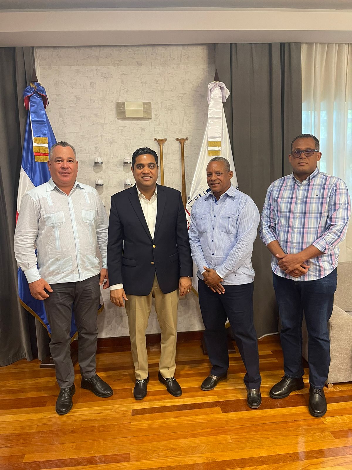 En esta importante visita también estuvieron presentes Ramón Rodríguez, de Santiago Rodríguez, y el asistente y asesor del alcalde, el Lic. Rafa Socias, quienes respaldaron las solicitudes del alcalde en beneficio de la juventud y el deporte Montecristeño.